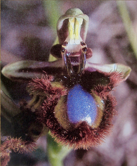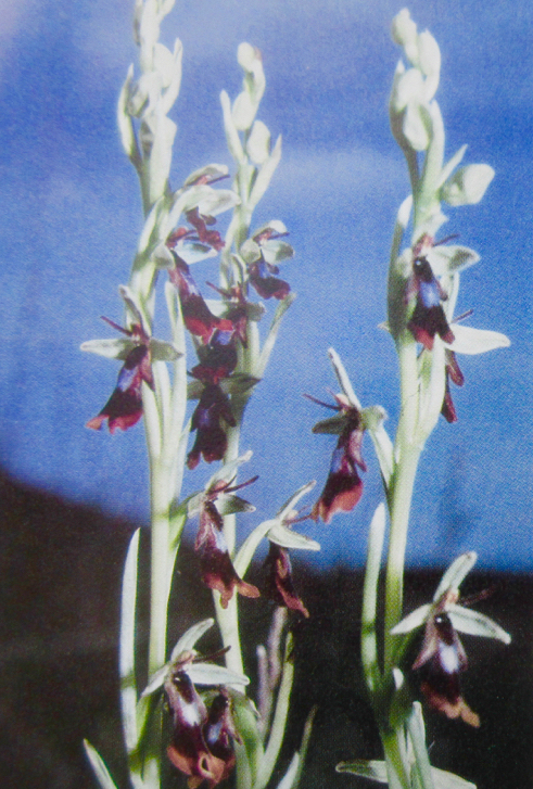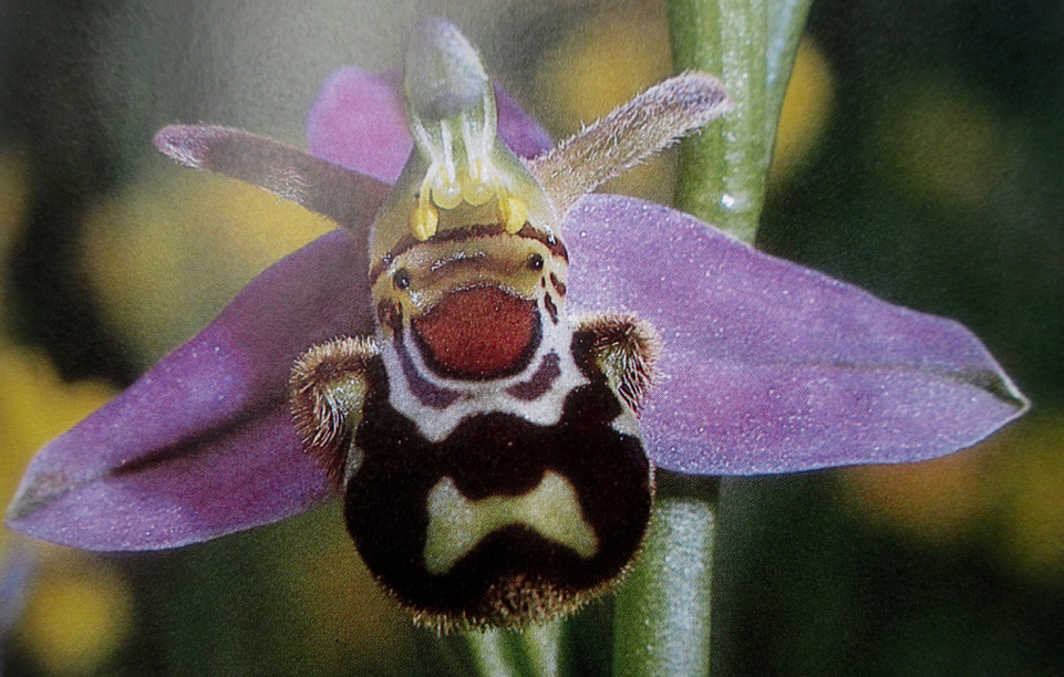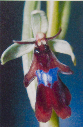 The fly orchid mimics the antennae, eyes, and wings of a fly.