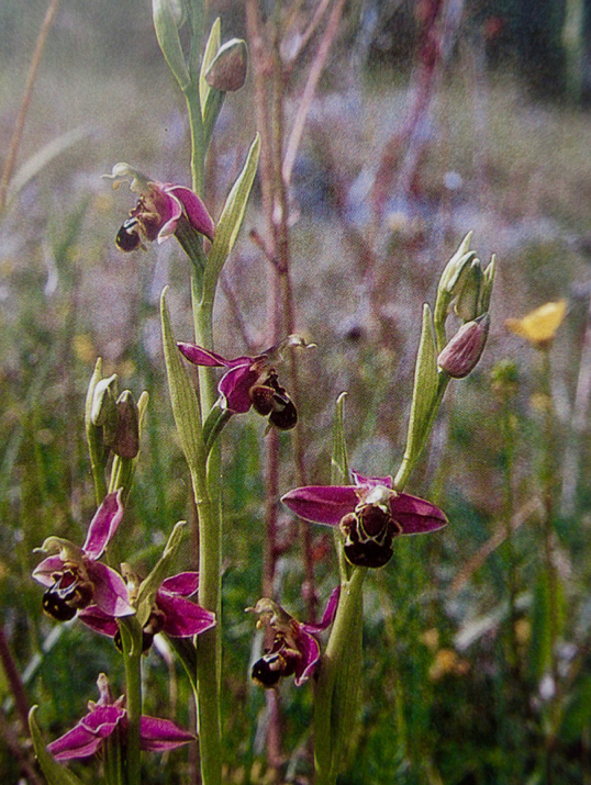 However, of the 68 species of orchids growing in these French meadows, the most interesting are the ones that mimic other meadow creatures. The bee orchid, as its name implies, is fuzzy and has a petal that looks like a bee.
