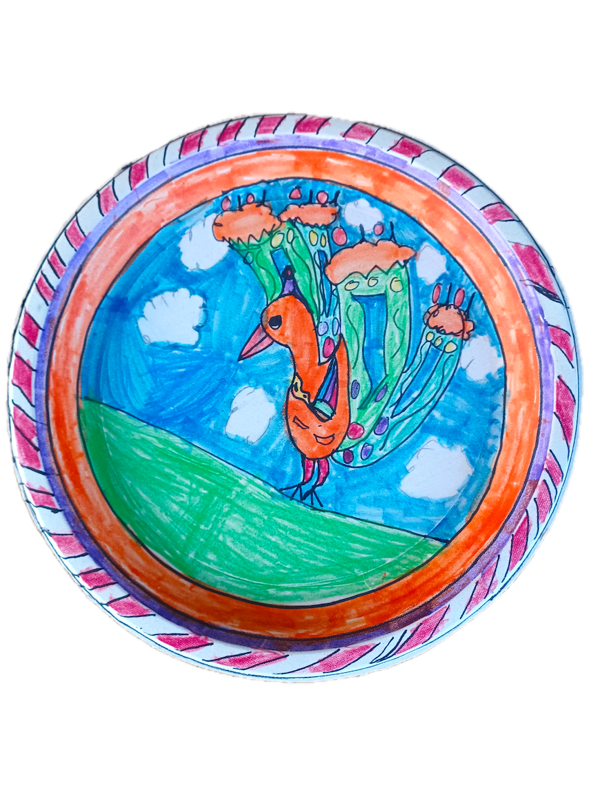 - The plate shape will encourage students to invent a variety of motifs to decorate the background.