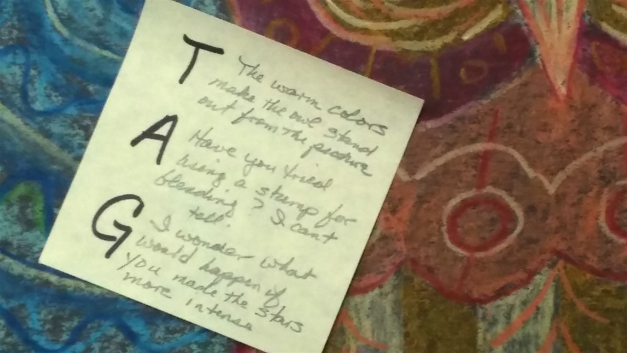 This involves two students, a group of students, or a parent and child. After EVERYONE INVOLVED has finished the project, each person uses the three-part TAG system to comment on their neighbors’ projects. This gets everyone into the work of evaulation.