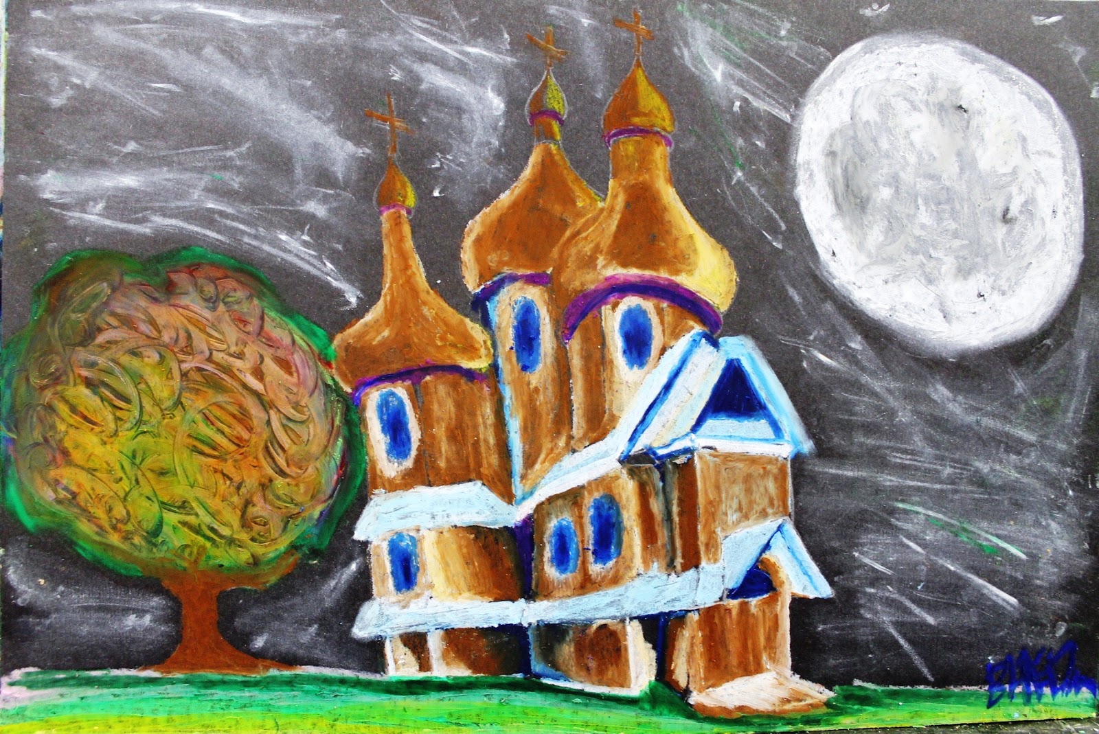 Notice how vibrant the watercolors became in this 8-year-old’s painting.