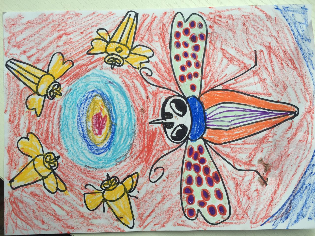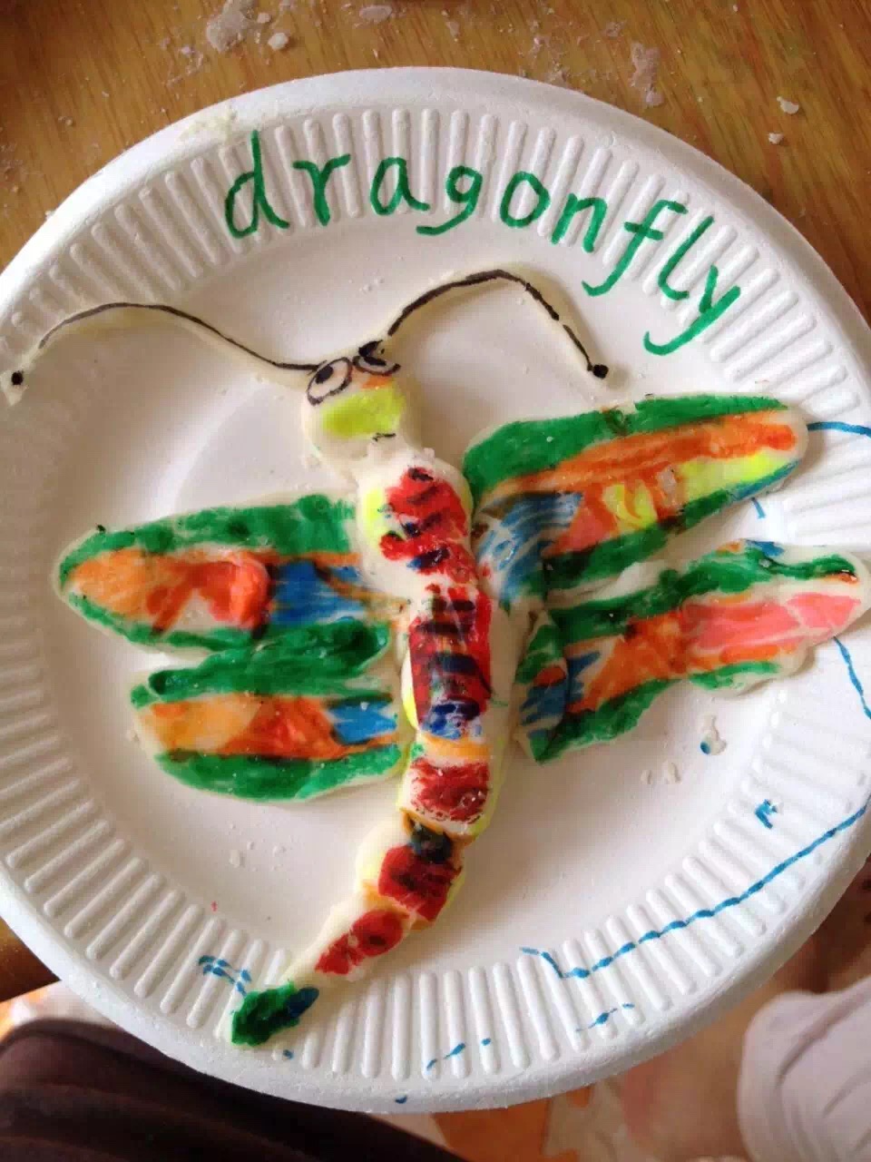 A mother and her 2-year-old child teamed up to make a 3-D version of the dragonfly.