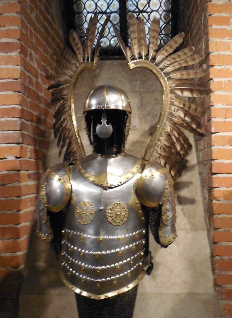 On every horse in the Polish army sat a hussar (a knight) wearing armor - and two tall stalks of large feathers! For ceremonies, knights wore armor with decorative feathers like this.